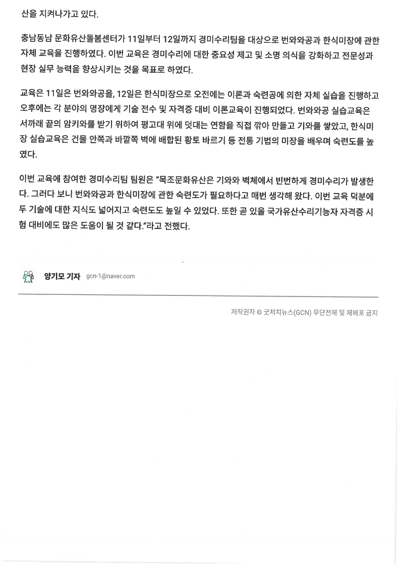 [보도자료] '충남동남 문화유산돌봄센터', 자체교육 통해 전문성·직무역량 강화 일거양득
