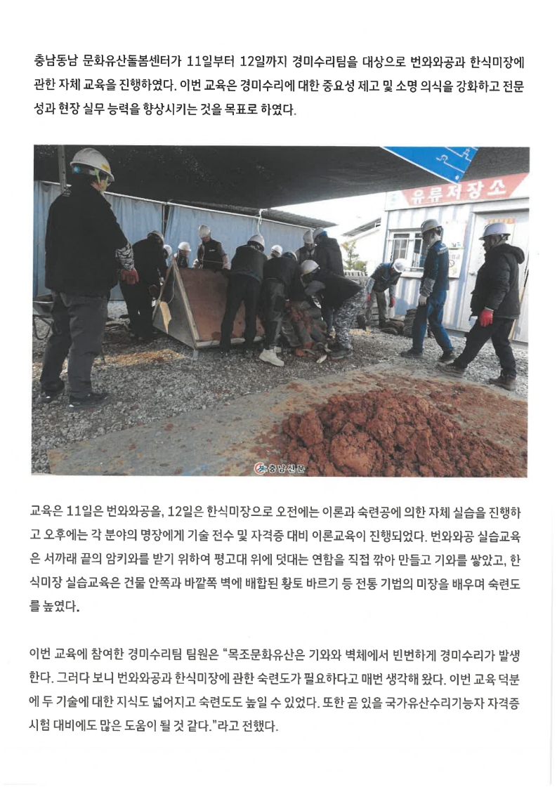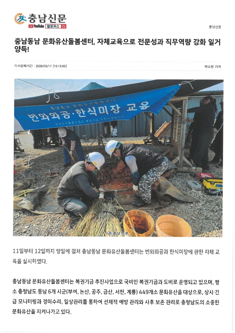 [보도자료] '충남동남 문화유산돌봄센터', 자체교육으로 전문성과 직무역량 강화 일거양득!