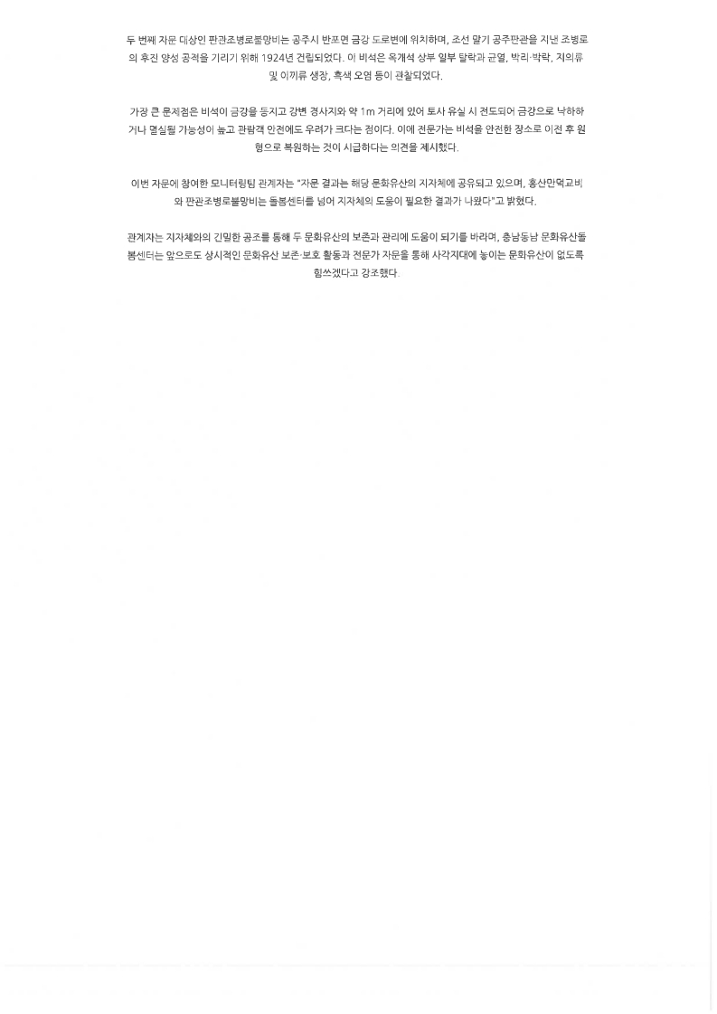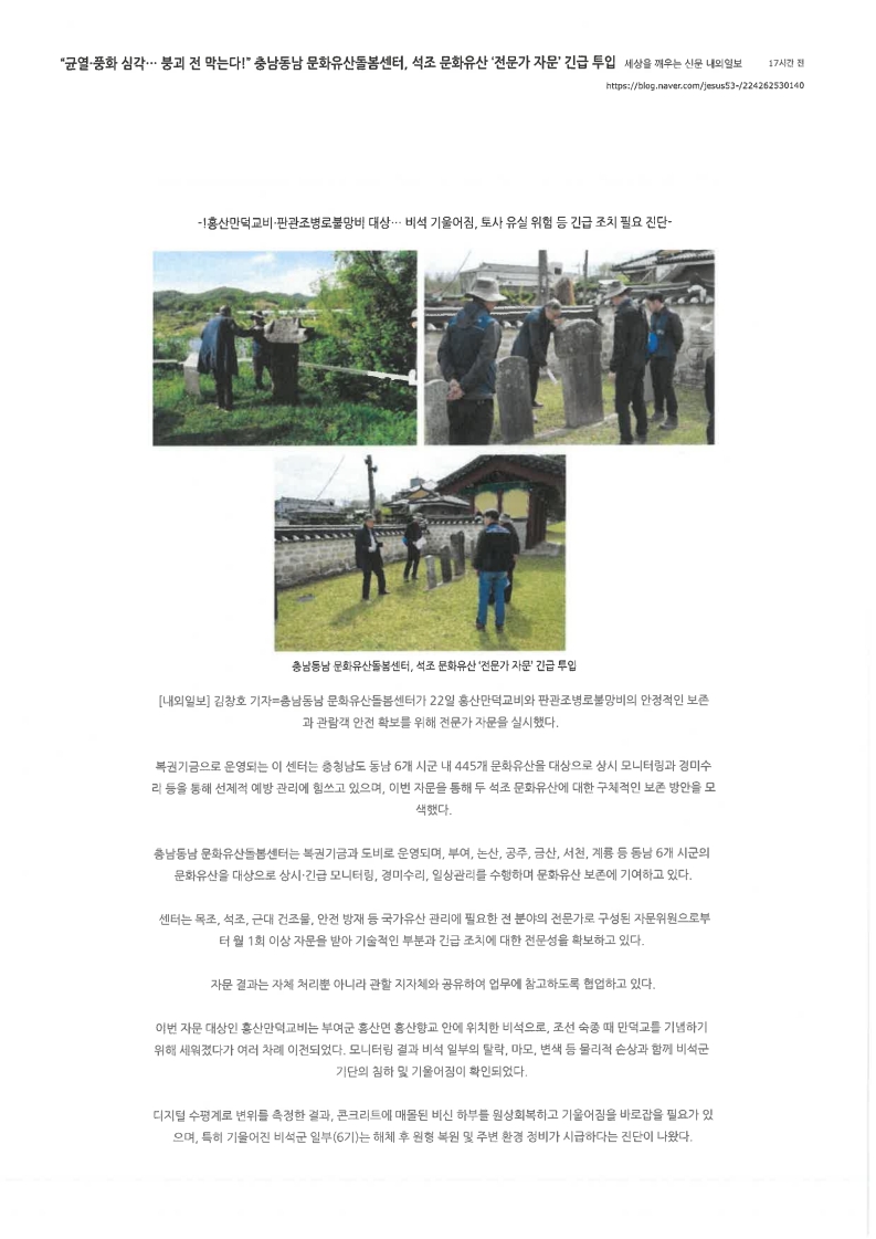 [보도자료] "균열·풍화 심각… 붕괴 전 막는다!" 충남동남 문화유산돌봄센터, 석조 문화유산 '전문가 자문' 긴급 투입