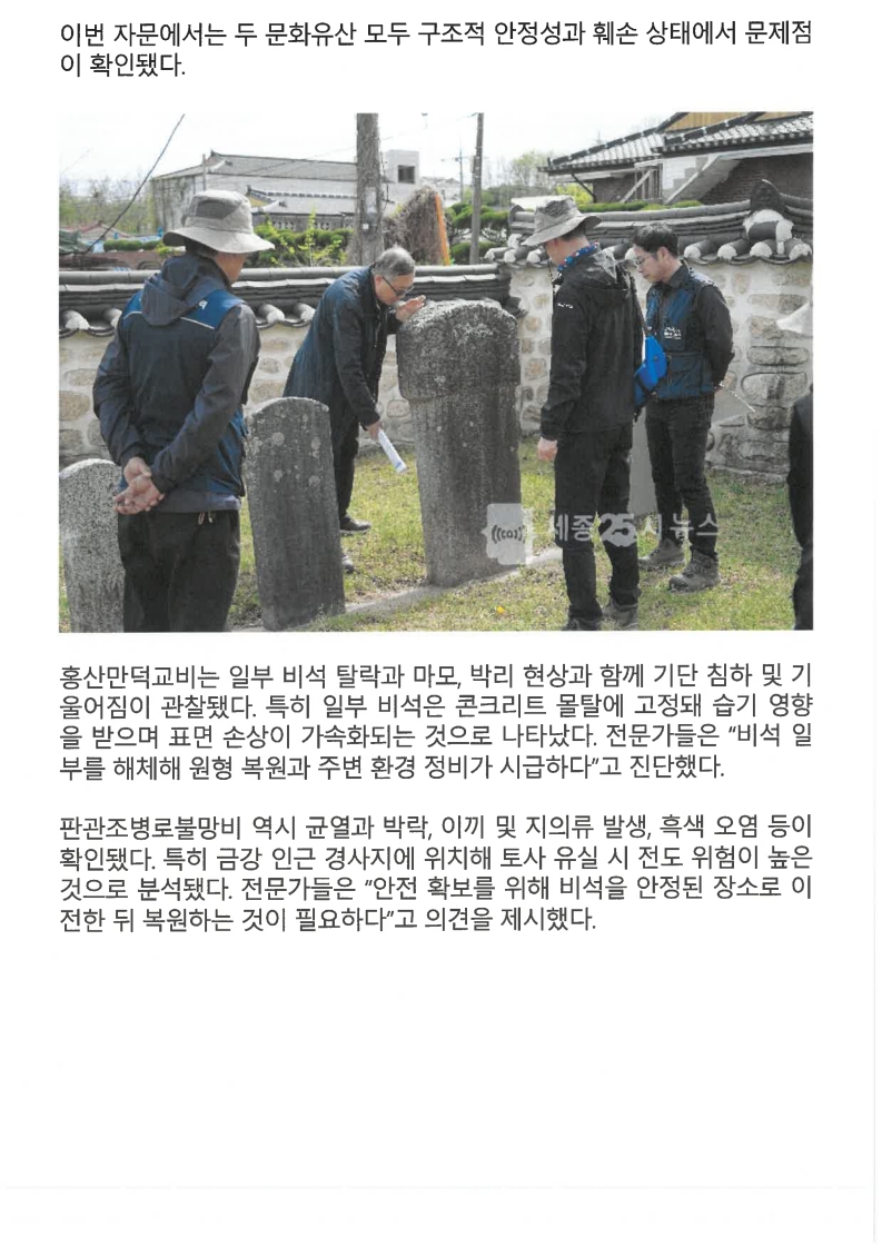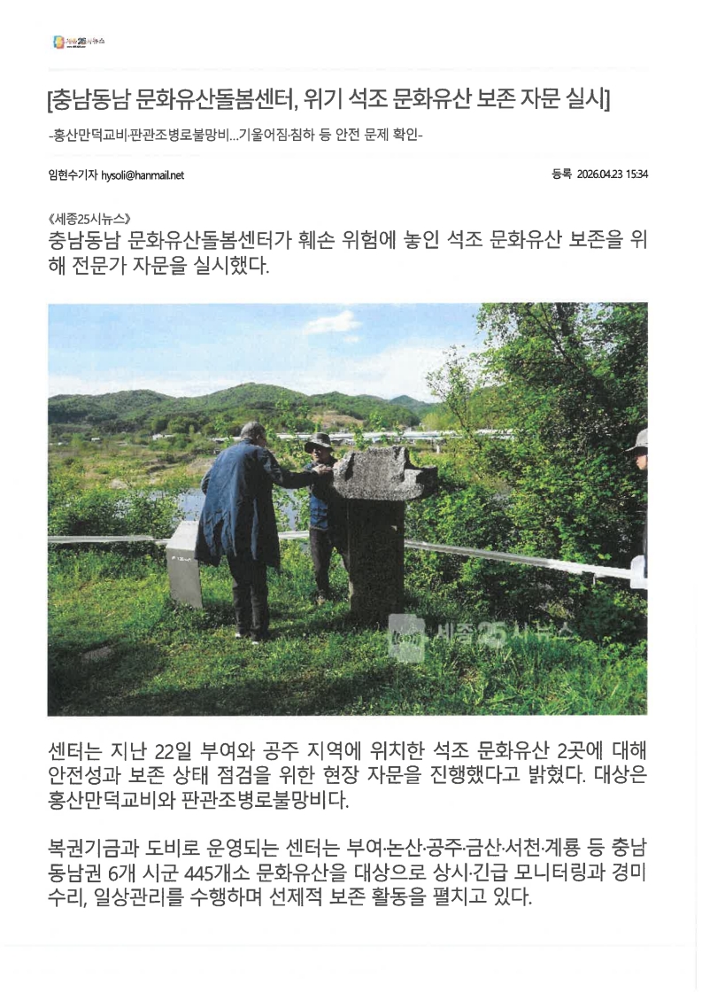 [보도자료] 충남동남 문화유산돌봄센터, 위기 석조 문화유산 보존 자문 실시