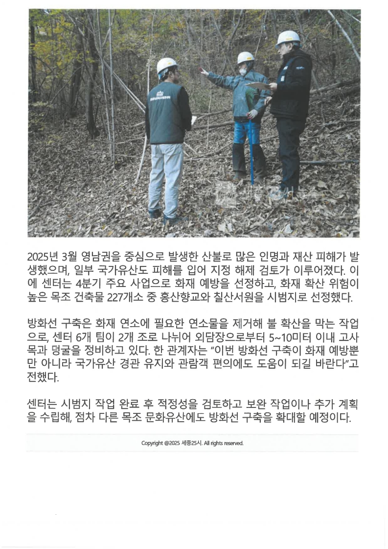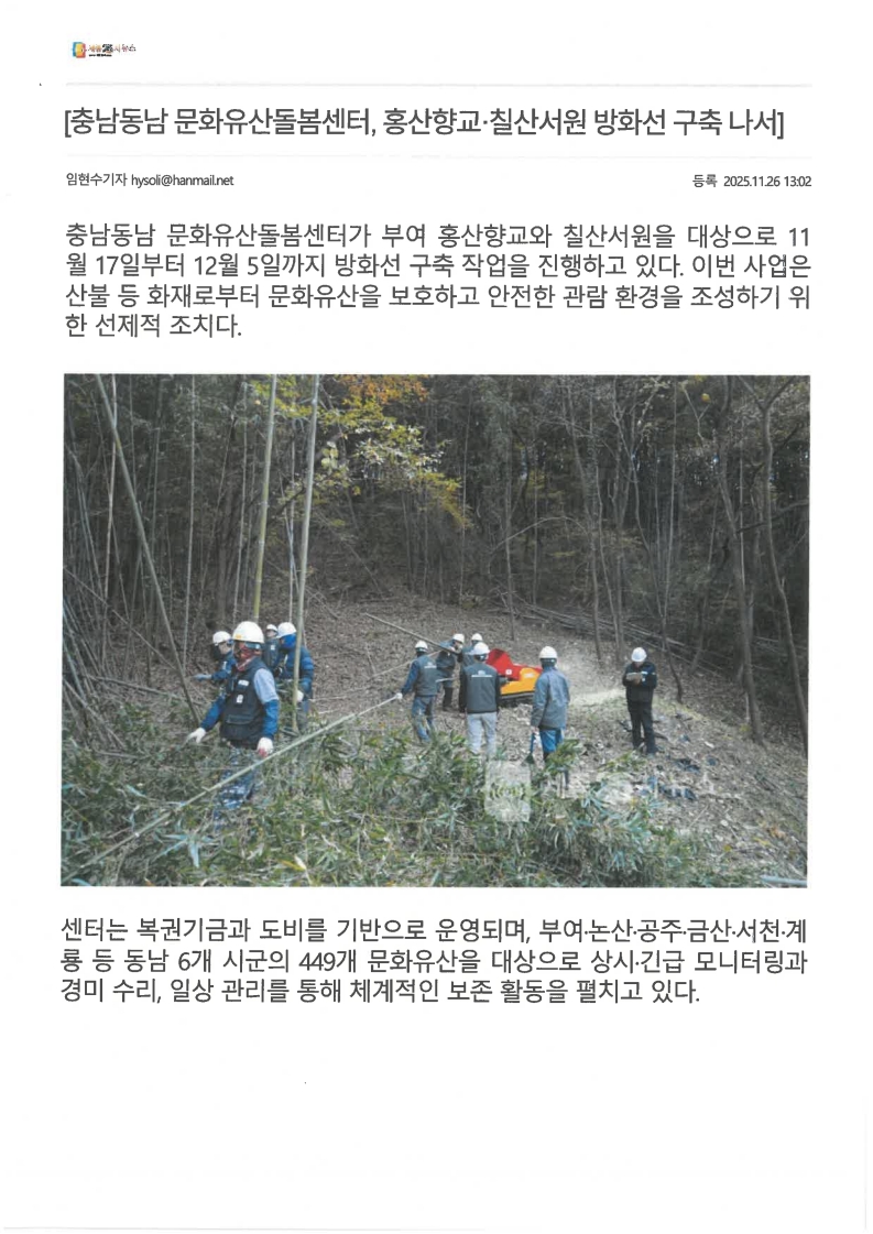 [보도자료] 충남동남 문화유산돌봄센터, 홍산향교·칠산서원 방화선 구축 나서