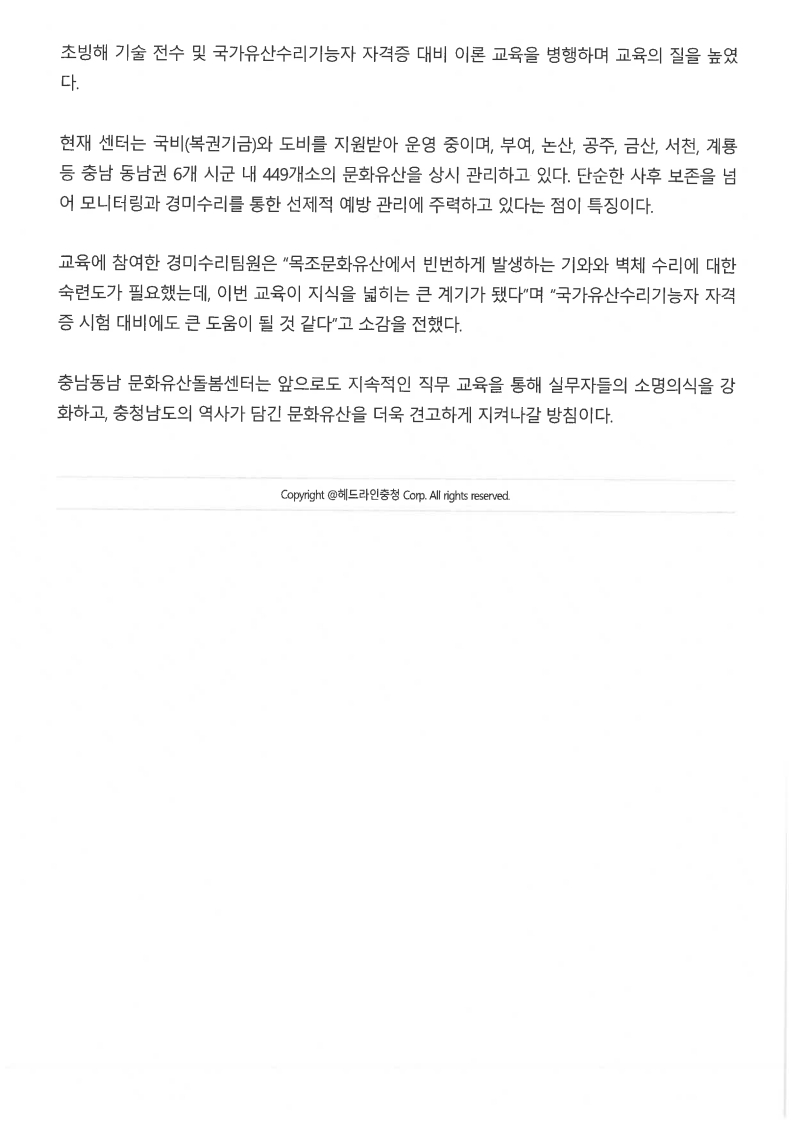 [보도자료] 충남 동남 6개 시군 문화유산 지킨다... 명장에게 배우는 '한식 미장'의 정수