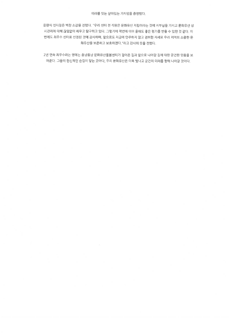[보도자료] 충남동남 문화유산돌봄센터, 역사의 숨결 지킨다! 충남동남 문화유산돌봄센터, 국가유산청 평가 2년 연속 '최우수' 금자탑!