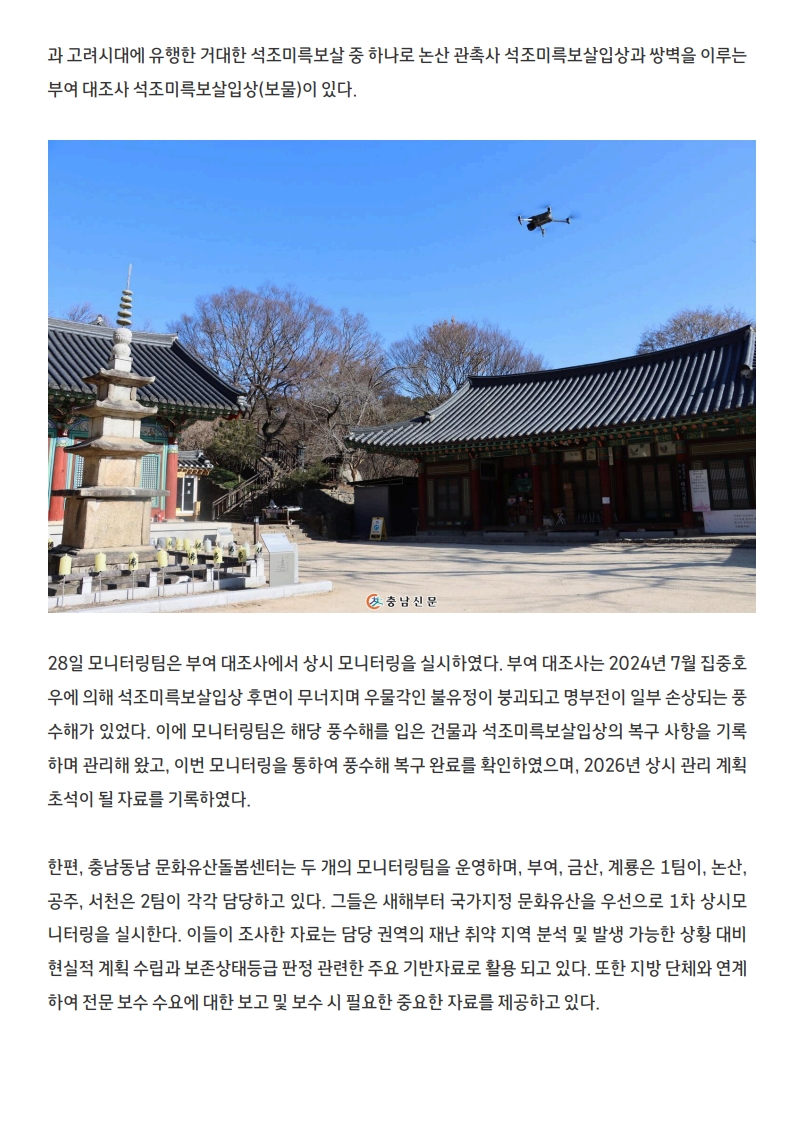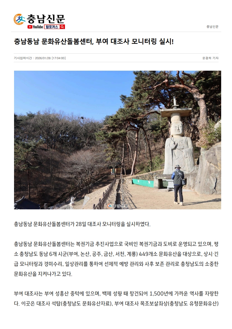 [보도자료] '충남동남 문화유산돌봄센터', 부여 대조사 모니터링 실시!